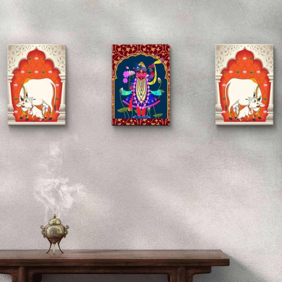 A harmonious blend of traditional artistry and modern design, this wall painting adds cultural richness to any space.