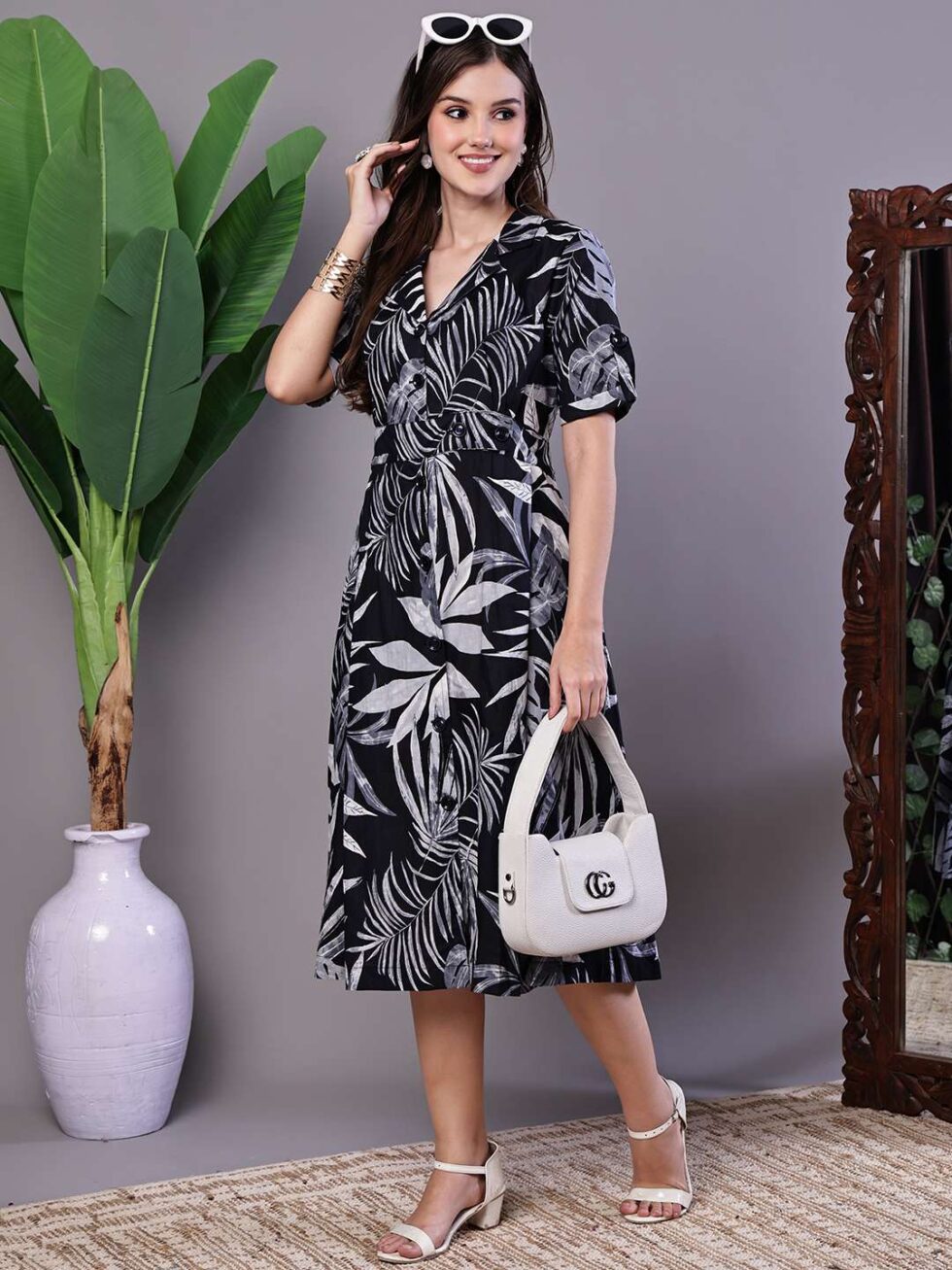Effortlessly stylish dress with a vibrant abstract print, tie-up shoulder straps, and a chic high-low handkerchief hemline ? perfect for casual days or evening gatherings.